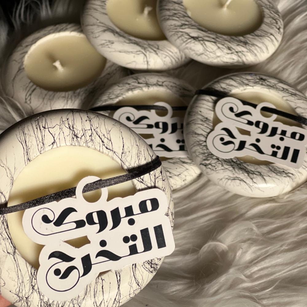 شموع معطرة بلون ابيض فقط ..يمكنك اختيار الاسم واللون والثيم حسب طلبكوإرساله عبر الواتس ابللكميات الكبيره التواصل واتس اب
